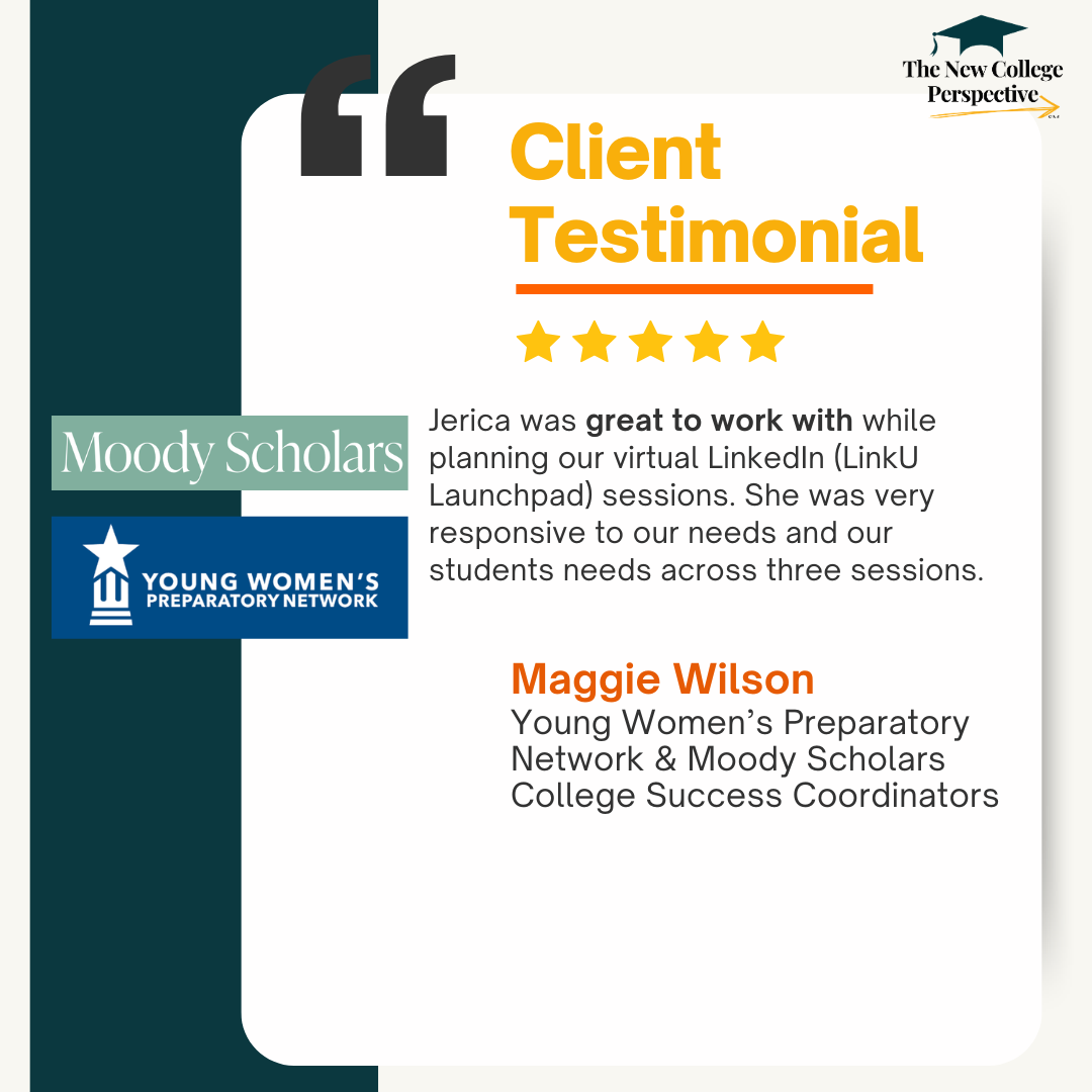 Our community of expert advisors partners with higher education institutions, scholarship foundations, and workforce programs to deliver programming and practical tools that strengthen career readiness, college success, and post-graduation outcomes.
