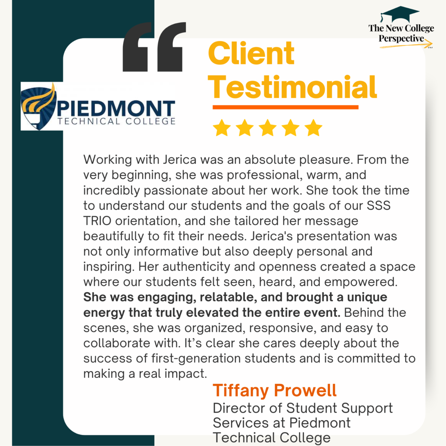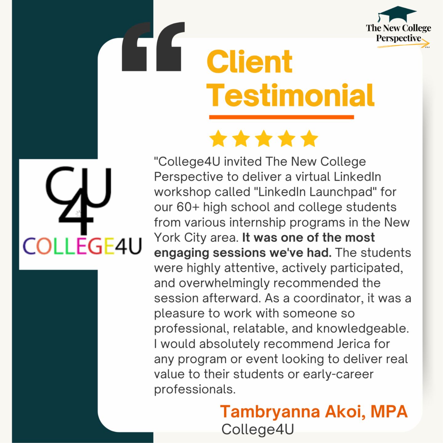 The New College Perspective partners with colleges, universities, TRIO programs, and scholarship organizations to deliver College-to-Career structured programming that improves career readiness and post-graduation outcomes.